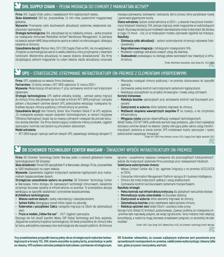 Kiedy na początku lat dwutysięcznych pierwsze firmy zaczęły eksperymentować z przechowywaniem danych „gdzieś w sieci”, nikt nie przewidywał, że dwadzieścia lat później chmura stanie się jednym z głównych tematów strategicznych w branży transportowej. Dziś, gdy łączne zadłużenie sektora transportu, spedycji i logistyki (TSL) przekroczyło 1,6 mld zł, a średnia marża oscyluje wokół 3,8 proc., decyzje o inwestycjach technologicznych nabierają szczególnego znaczenia. Nie są to już wybory między nowoczesnością a tradycją, lecz kalkulacje między koniecznością a możliwościami.